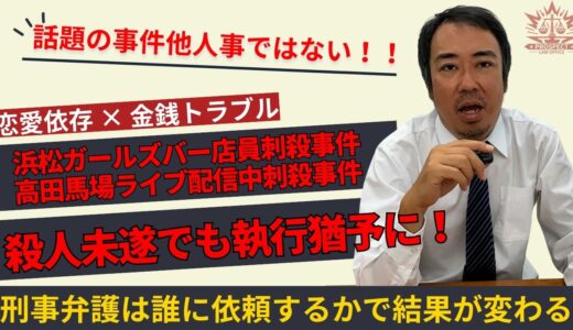 タグ: YouTube更新, 殺人未遂, 執行猶予, 刑事弁護, 恋愛トラブル, 弁護士相談